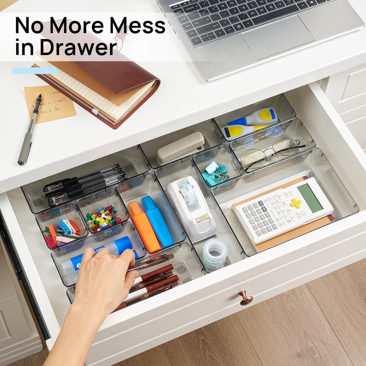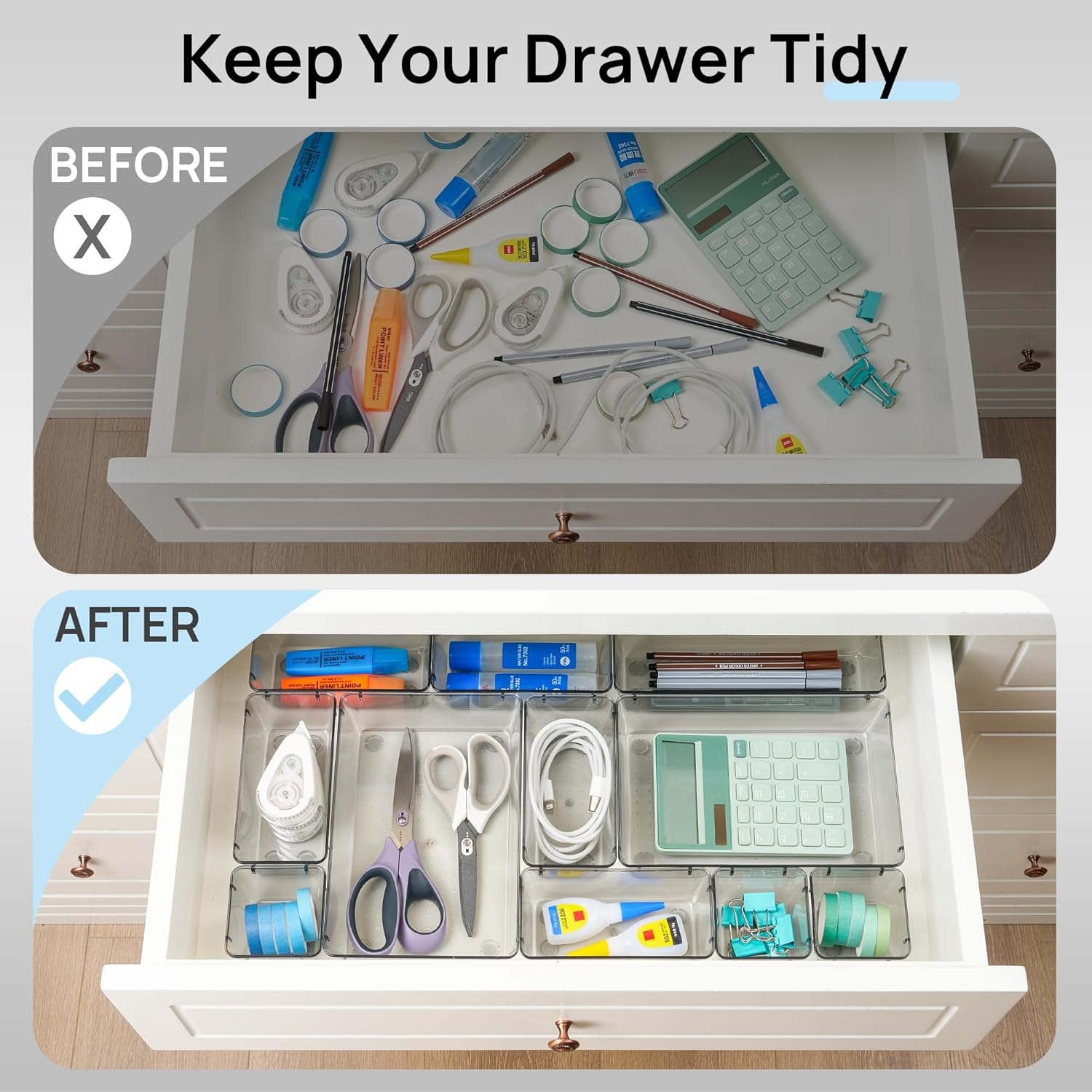 This drawer organizer set provides a simple and practical storage solution for keeping your home or workspace clean, organized, and easy to manage.